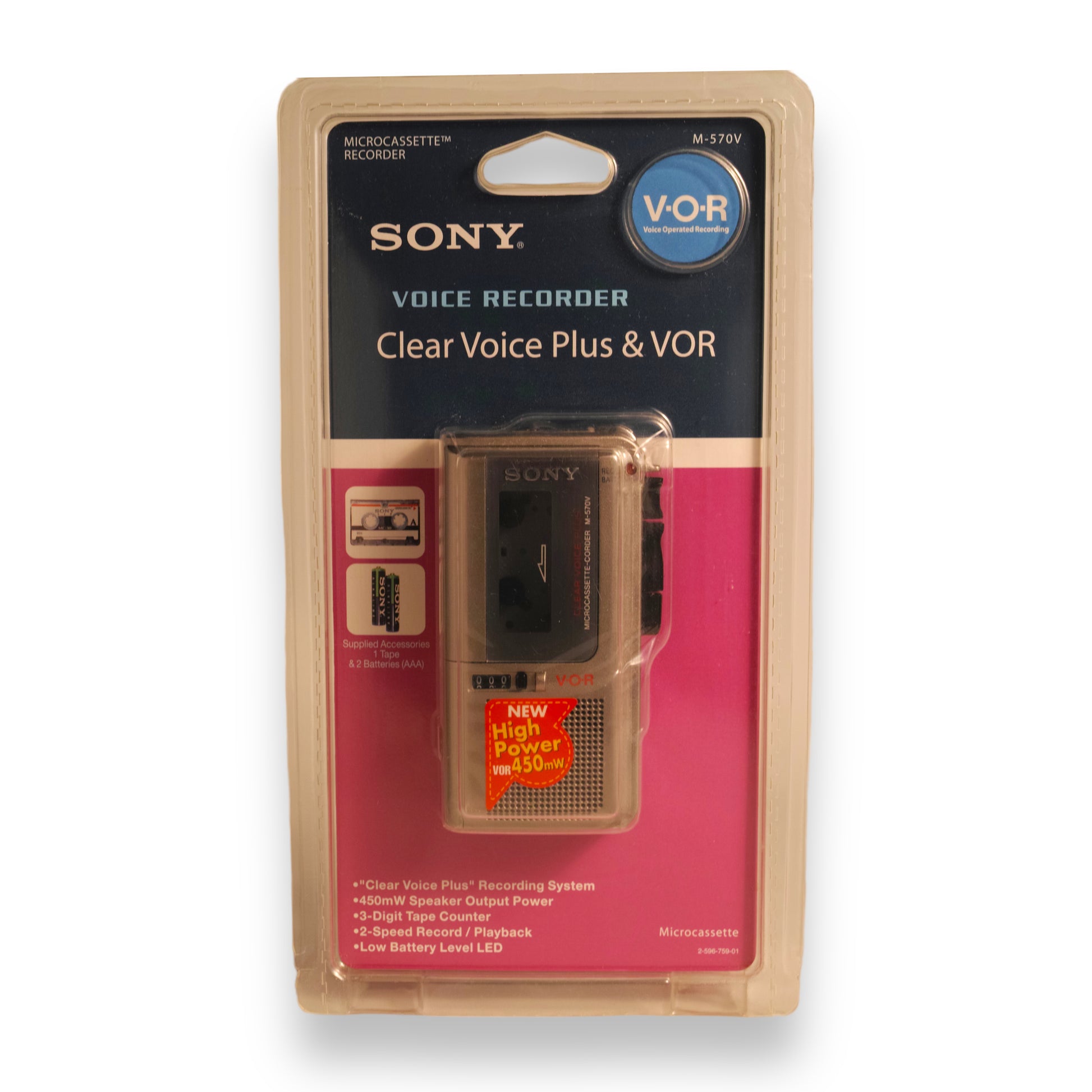 Choose the Sony M-570V for reliable sound quality. The Sony microcasette recorder is designed to capture audio clearly with its high-performance microphone and digital recording features. Enjoy effortless playback and recording with the speaker and automatic recording level feature. A long life battery ensures hours of recording time.